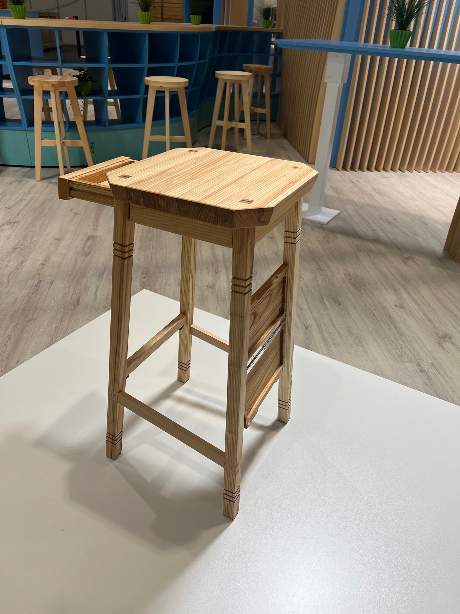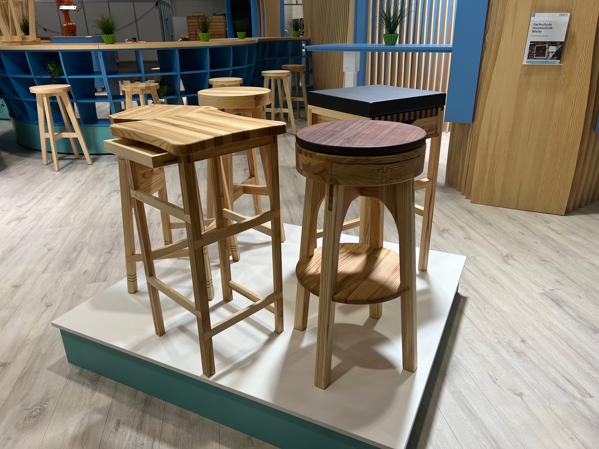 Der Unterricht an der Fachschule Holztechnik Melle wird nicht ausschließlich fächerweise gegeben, sondern es werden an Projekten Kompetenzen und Inhalte aus den verschiedensten Bereichen festgemacht. Bereits im ersten Projekt mit dem Schwerpunkt Vollholz werden so Elemente aus dem Projektmanagement parallel zu Inhalten der Fertigungstechnik, Entwurf- und Konstruktion und auch CAD in Teams erarbeitet. Die Ergebnisse werden selbstverständlich praktisch umgesetzt.